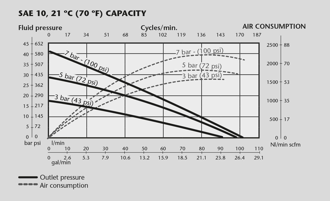 | Maximum fluid outlet pressure | 72 bar (1,020 psi) |