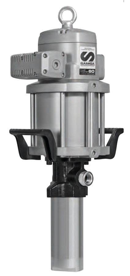 Double acting air operated medium pressure and high delivery pump, for large installations with simultaneous operation outlets and applications that require large, constant delivery rates. Built in port for optional pressure relief valve (PN 609 007). Flange mounted pump.