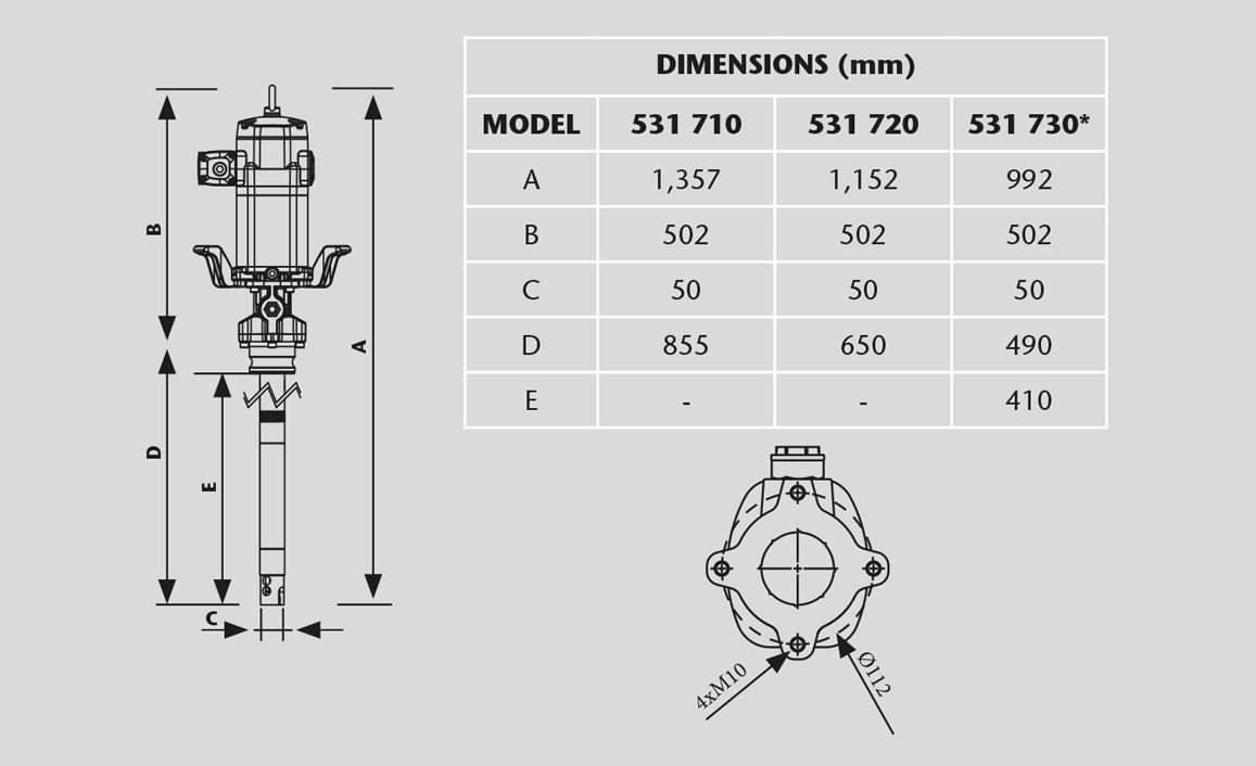 531 710 | 185 kg (400 lb) drum | 855 mm | 1,357 mm | 25 kg |