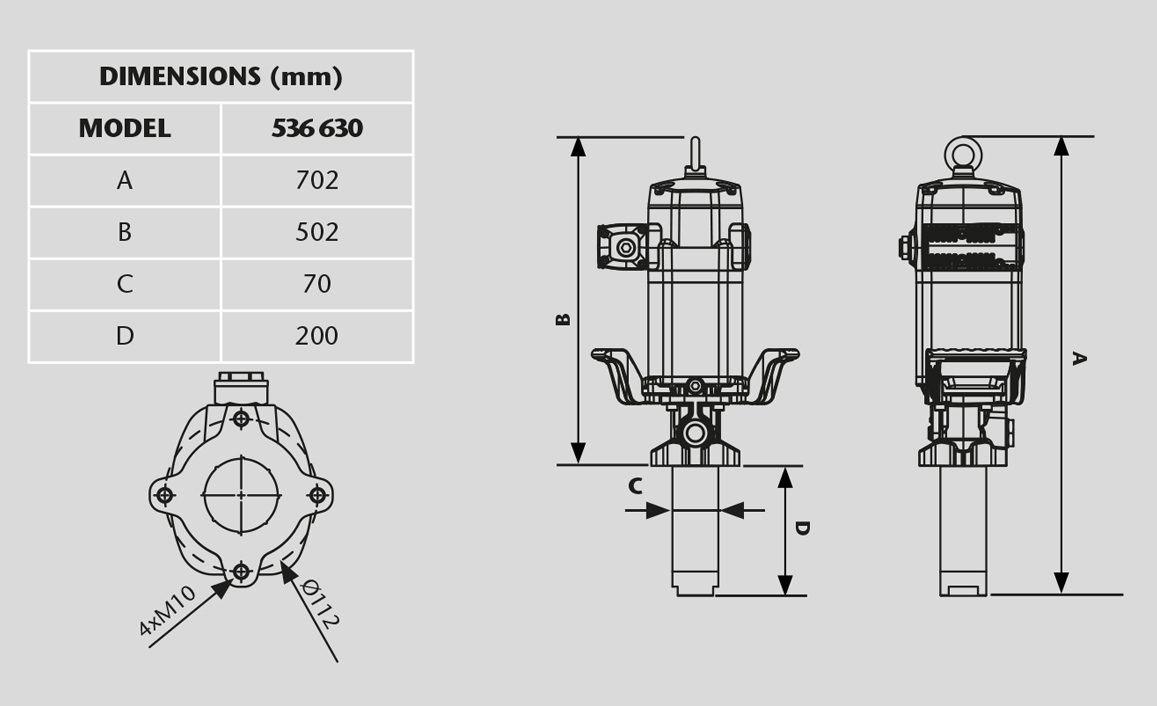 536 630 | Universal stub pump | 200 mm | 702mm | 17 kg |