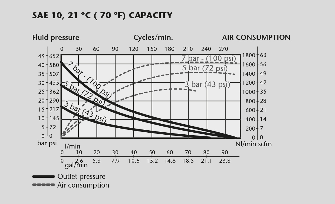 Maximum fluid outlet pressure | 72 bar (1,020 psi) |
