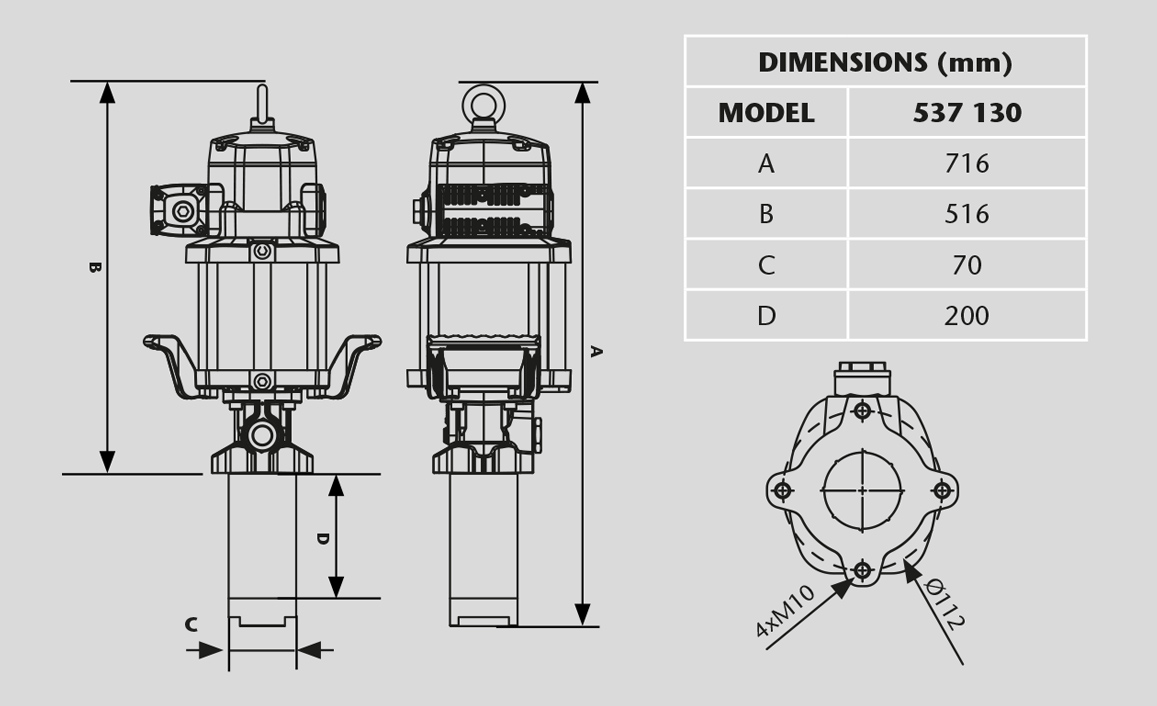 537 130 | Universal stub pump | 200 mm | 716 mm | 19 kg |