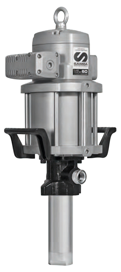 Double acting air operated moderate pressure and high delivery for very large installation with simultaneous operation outlets or when low air pressure would limit pump performances. Built in port for optional pressure relief valve (PN 609 007). Flange mounted pump.