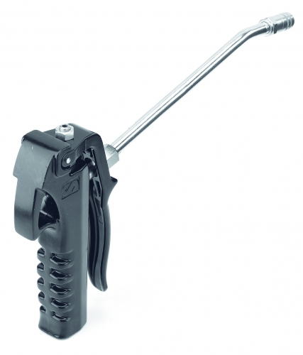 Grease control gun with rigid outlet with 3 jaw connector (PN 121 050). High pressure grease control guns with ergonomic body and trigger designed to reduce operator hand fatigue.